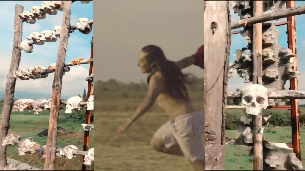 In the south of Mexico City a filmset has been abandoned. It was used to retell the story of the arrival of Hernán Cortés to the mexica capital of Tenochtitlan. Now this set has itself turned into a ruin and become a place where time collapses and new knots are being tied. The movie is assembled from two re-appropriations of this scenery: a contemporary poet and a witch performing a ritual summoning the past to offer the generations to come a new memory, and a Youtuber diving through the archeology of this contemporary story.
